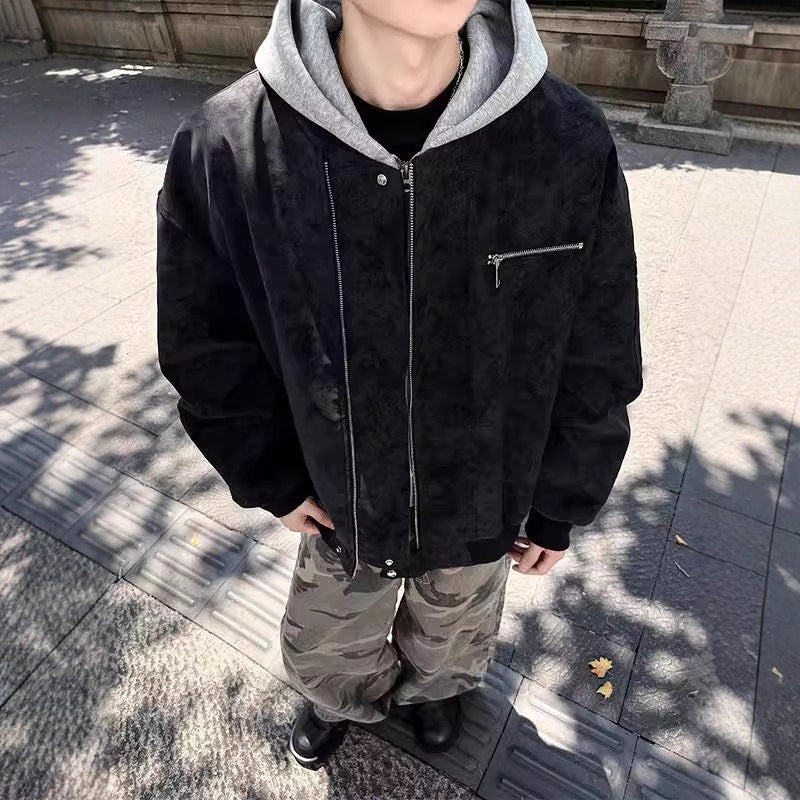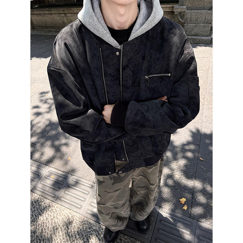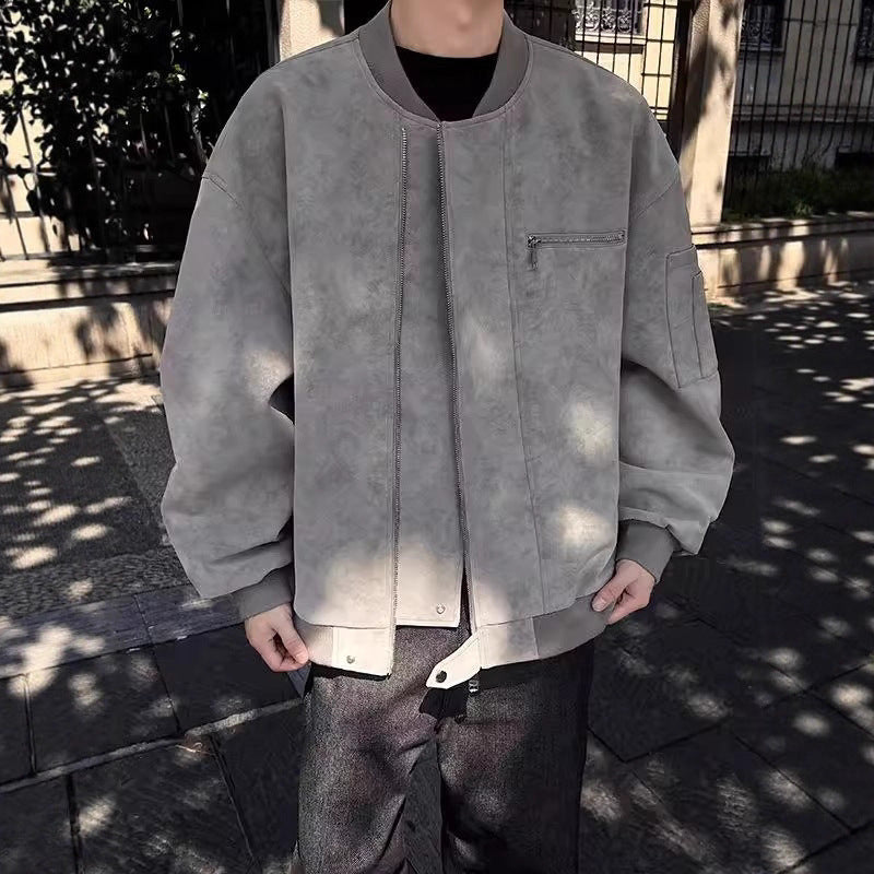 Mechanical Style Flying Motorcycle Leather Short Casual Baseball Jacket Men